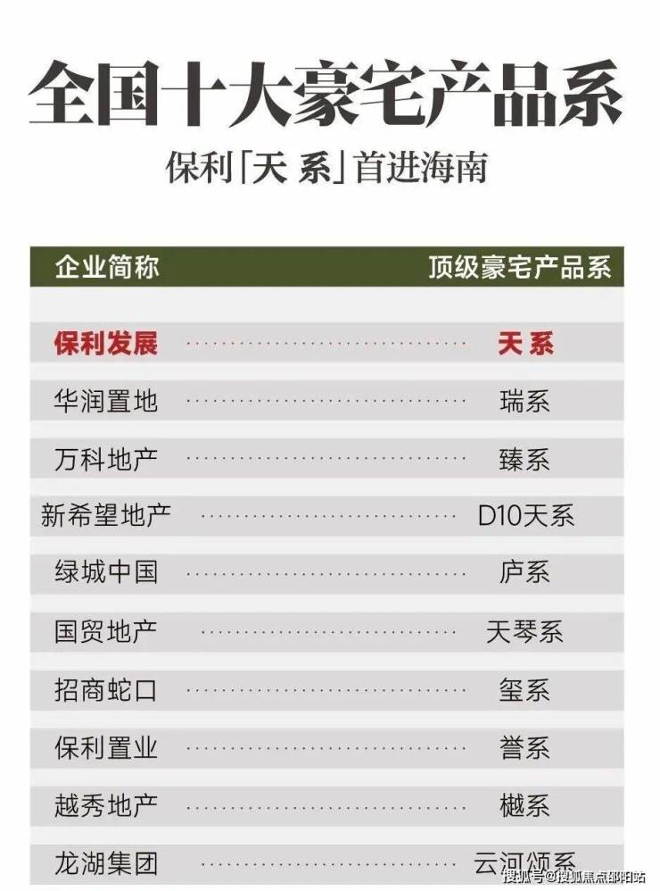 天,是保利顶级产品的价值基因。作为全国十大豪宅品系中进入海南的首位,天系,以客户需求为圆心,根据城市基座,出“甄选城芯、产品打造、服务配置”三个方面的严苛要求,因而成为保利顶级豪宅产品系。