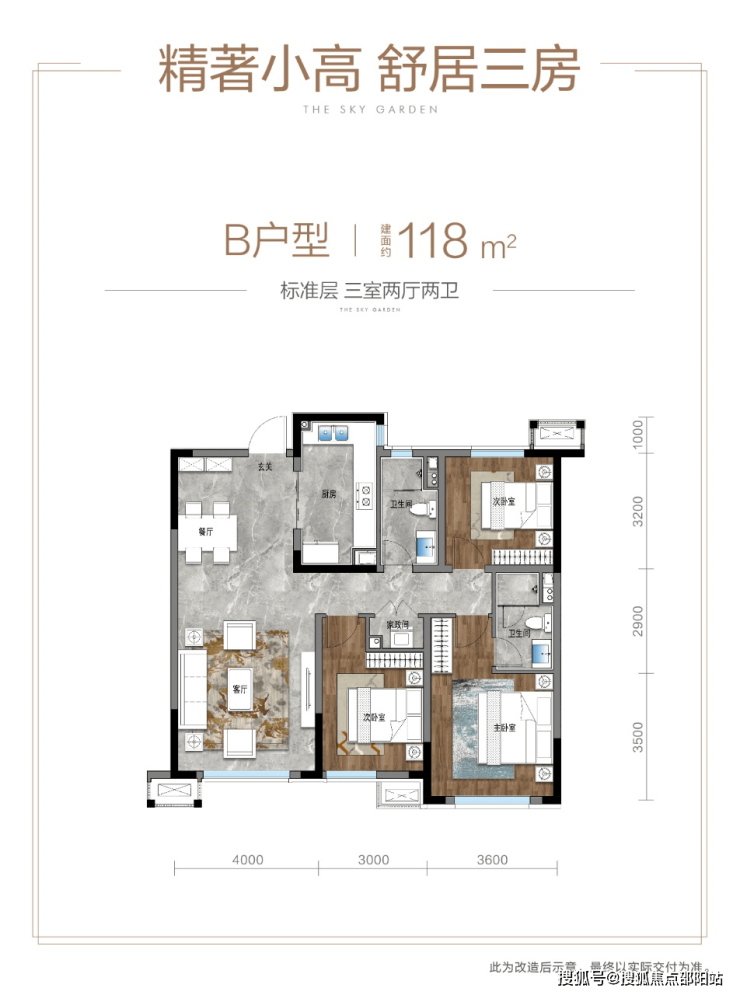 产品信息:建筑面积约118/130㎡三房小高(20F),建筑面积