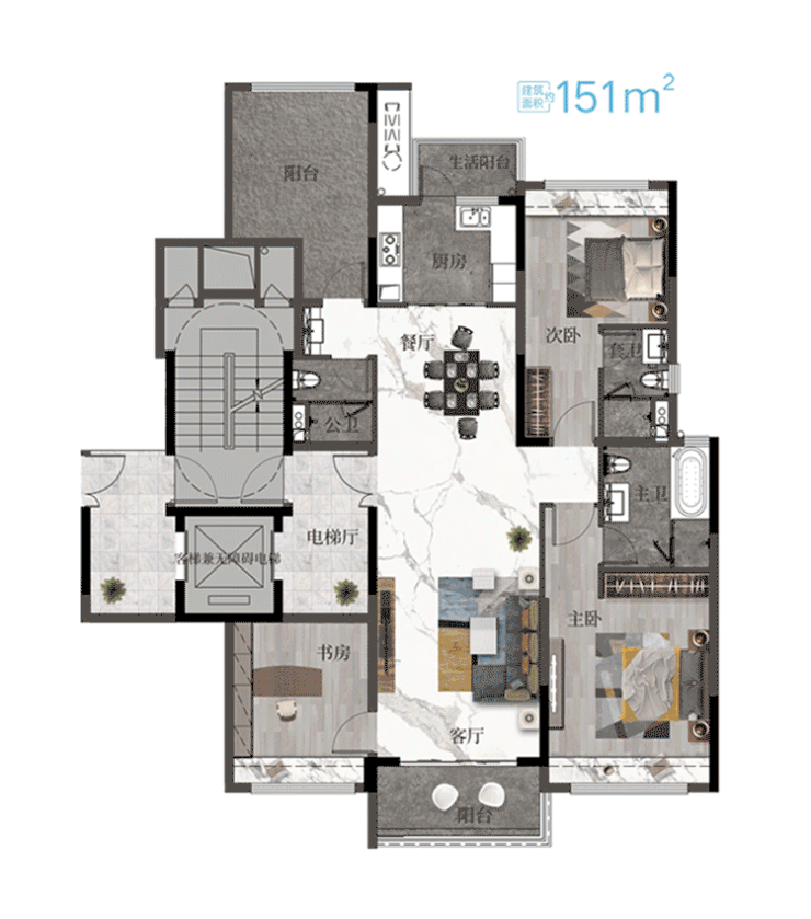 二层的居住区,皆是套房设计+独立阳台,每位家人都能私享四季美景。