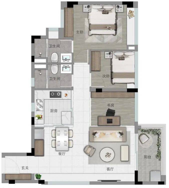 83㎡三房两卫:带主套舒适三房
