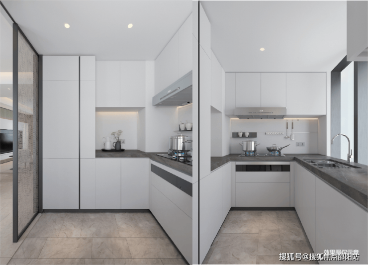 厨房配备嵌入式专用空调,同时配备西门子抽油烟机、燃气灶和嵌入式洗碗机。