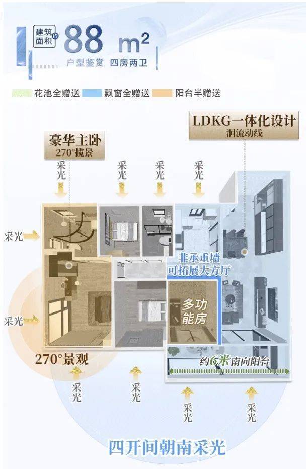 独立玄关双边收纳空,可变LDKG一体约7米长进深,四开间南向,约23㎡豪华主卧,保证空间利用率,又能实现功能需求全覆盖