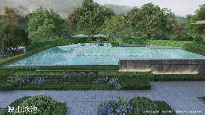 林·生态绿洲】以自然生态作为园林景观的底色,将园林景致融入生活点滴,打造艺术品级社区园林。映山泳池:隐奢酒店度假感引入,巧妙将远处山景映入眼底,打造不过时的经典。