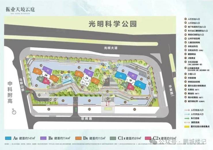 - 公园头排视野:80%户型可无遮挡俯瞰科学公园,部分楼层视野纵深达2公里,形成“窗景即园景”的视觉震撼。