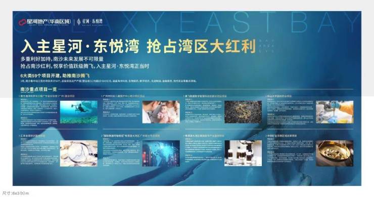 星河·东悦湾位于南沙蕉门中心区,地铁4号线蕉门站旁,背靠大山乸森林公园,面向蕉门河,项目为规模达92万㎡的城市综合体,自带9.7万㎡情景式购物中心COCOPark,填补南沙高端购物综合体;