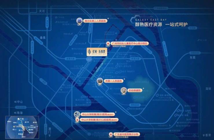 5分钟可达南沙妇女儿童医疗中心,3公里内南沙中心医院、中大附属口腔医院、中大附属第一医院聚集。