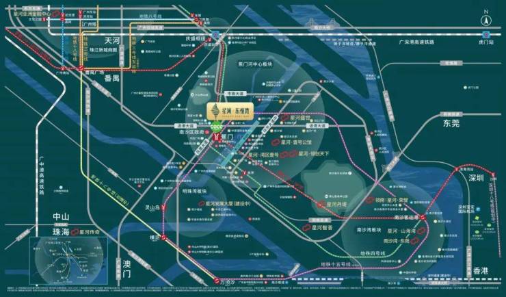 庆盛、南沙双轨道枢纽、邮轮母港、深圳宝安机场环绕,1小时畅达大湾区城市群。