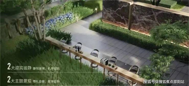 |“臻享森境”景观会客厅将自然之美与精致工艺融为一体,打造景观会客厅、艺术水景、户外吧台、阳光草坪等静谧空间。