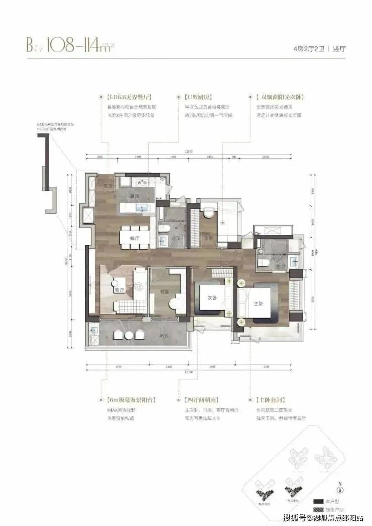 建面约108-143㎡海幕纯四房,臻藏级南向湾海视野,LDKB人性化动线设计,格局方正、高实用率,打造独立玄关、双飘窗主卧、步入式衣帽间等个性化空间。