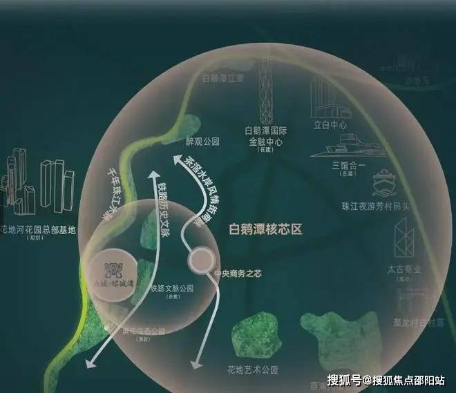 【白鹅潭核心区发展】 白鹅潭地区作为广州主城核心区,规划投资约2500亿,定位为千亿经济势能,形成东西两翼黄金三角格局,包括地标项目如白鹅潭国际金融中心等。