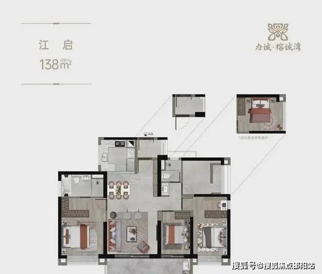 建面约138㎡的四房望江大平层户型,四开间朝南,采光、通风好。拥有独立入户花园和约6.8米的江景阳台,进一步拉升改善住户的居住体验。