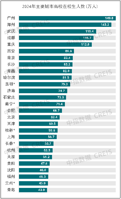 注:统计口径为本专科在校生,南昌、哈尔滨、济南为高校全部在校生人数,*为2023年城市统计年鉴数据