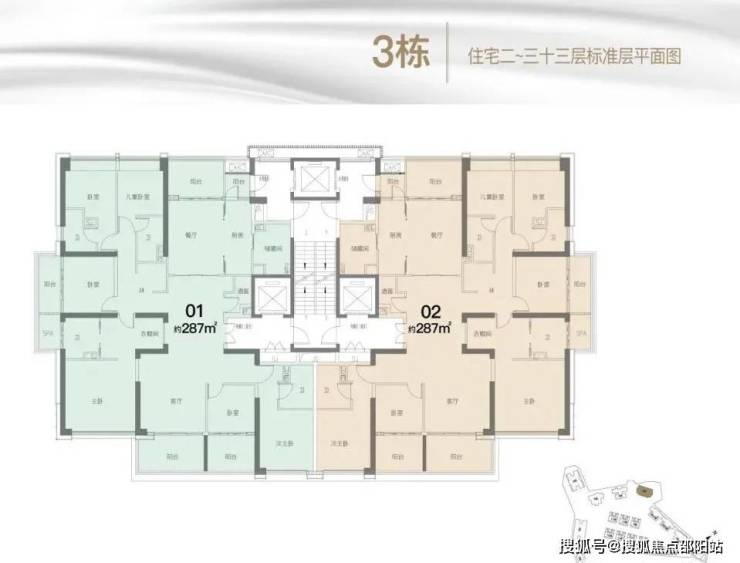 15-31层:一层4户,全部都是229㎡的四房