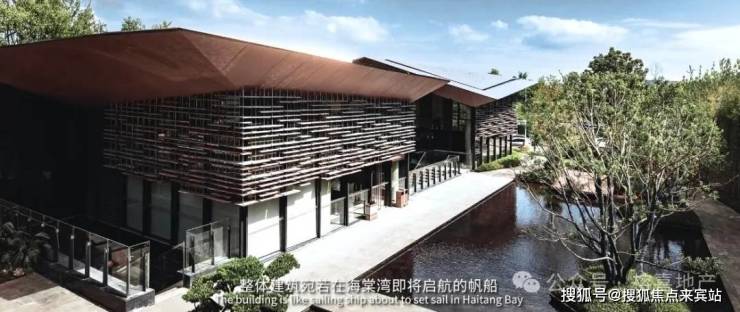 招商中心设计灵感为黎族建筑与海洋文化,采用三亚特有石材与金属坡面屋顶,筑就形如航船的商业地标(可售)