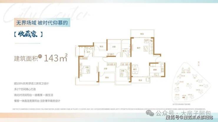 2梯3户奢居梯户比,奢阔楼距,朝向、景观、面积层数等追求极致平衡,户型空间厅房方正实用、明厨明卫、动静洁污分区明确,配置储存空间,多数户型配置入户花园。