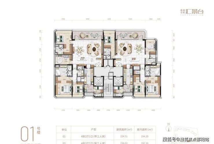 项目由14栋12层小高层组成,产品涵盖123-352㎡三至五房,共8类户型,户型实用率约82-84%
