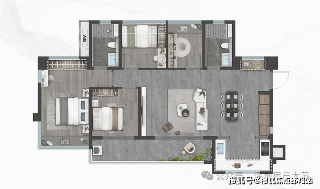 御雲:建面约80㎡三室两厅1.9卫,创新型1.9卫设计,臻享从容生活