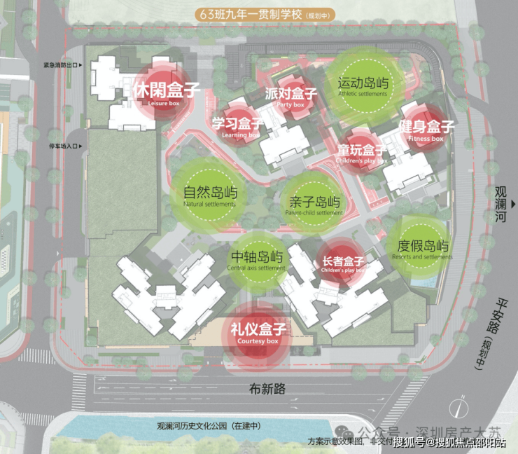 东北朝向:观澜河、碧道景观、观澜古墟景观