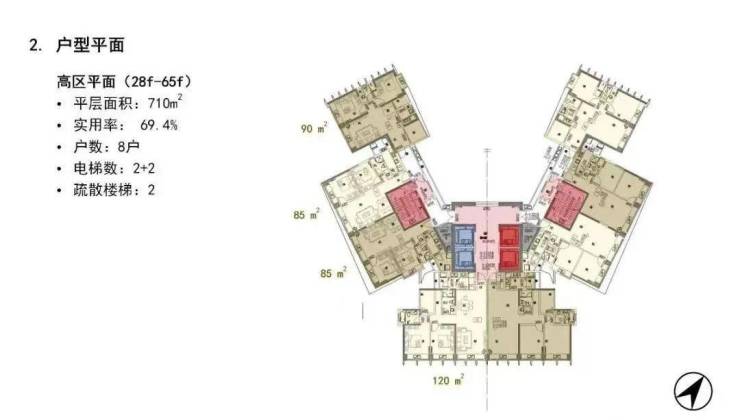 整个楼层是蝶形平面布局,板楼设计,实现每一户景观价值和通透价值最大化;