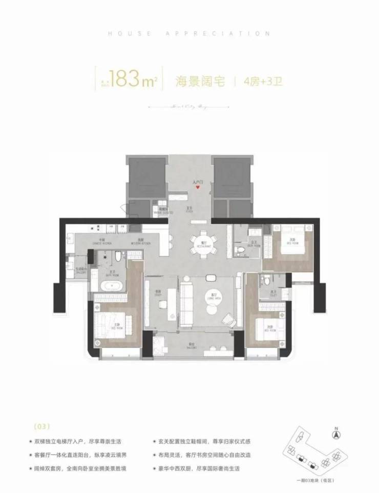 环湾奢居 私享精粹约200m超高层视野下的天际居所,私享珍罕城市山海美景,高端服务与精粹配套,打造环湾顶点之上的滨海都会生活范本。