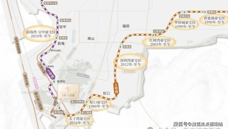 轨道交通:距离2号线/5号线“赤湾站”约500米,步行约8-10分钟,5号线串联前海、宝中、西丽留仙洞、深圳北站,2号线被誉为深圳豪宅线,串联太子湾、深圳湾、红树湾、华侨城、香蜜湖、福田中心等核心地段;