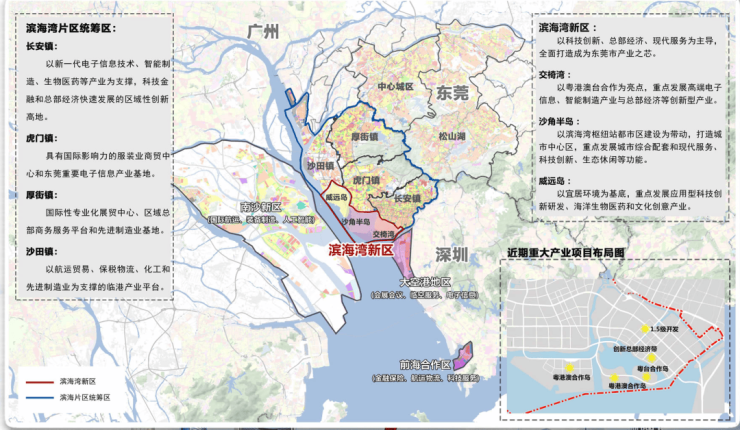 湾区新秀:2017年正式成立,地处粤港澳大湾区几何中心,是珠江口东岸主轴连片待开发区域,规划面积约83.2平方公里,总投资额超4000亿元,由长安交椅湾、沙角半岛、威远岛三大板块组成的,是广深港科创走廊的核心平台。