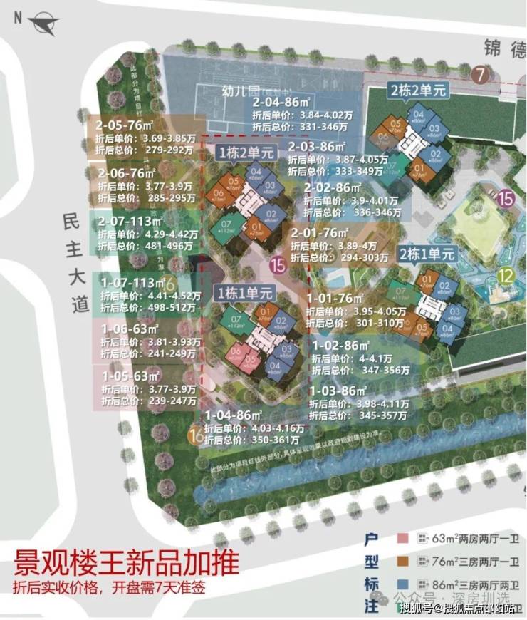 户型:建面约63㎡两房一卫/约76㎡三房一卫/约86㎡三房两卫/约112㎡四房两卫