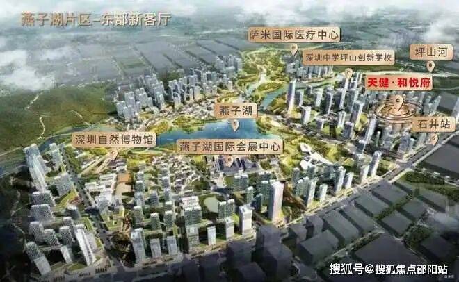 2021年深圳两会提及加快建设9大区域,包括燕子湖新区,坪山十四五提出“1+7+N”重点片区格局,1为燕子湖,市级区级双重背书,高标准打造定位东部城市新客厅。