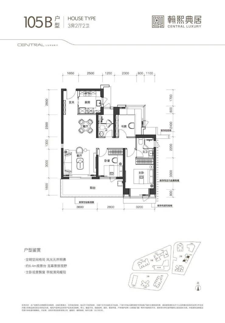 建面约105㎡的3房2厅2卫,折后总价:894-1236万