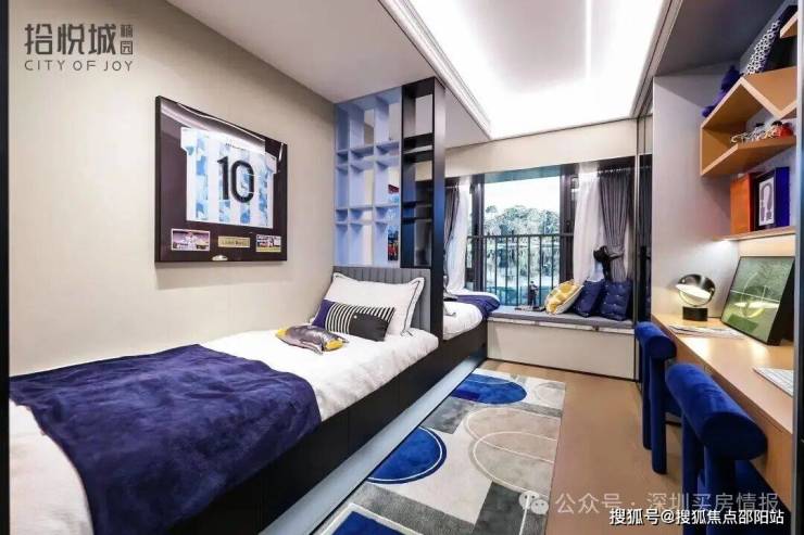 而拾悦城楠园敢于突破常规,既保证了主卧的阔绰空间,也让次卧有足够的尺度满足两个孩子休息、学习、玩乐等需求。