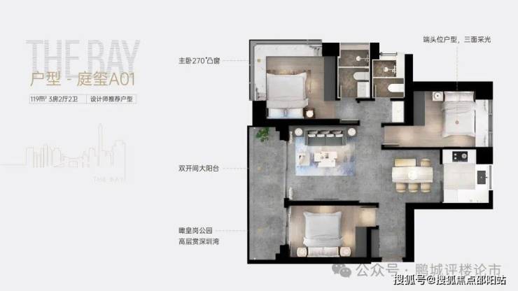 产品力突出:主力户型为119-175㎡三至四房,板式结构保证南北通透,主卧270°飘窗设计,部分户型专梯入户,私密性极佳。采用瑞族、大金、汉斯格雅等国际一线品牌精装,标准超1万元/㎡,全屋智能化系统实现一键场景切换。