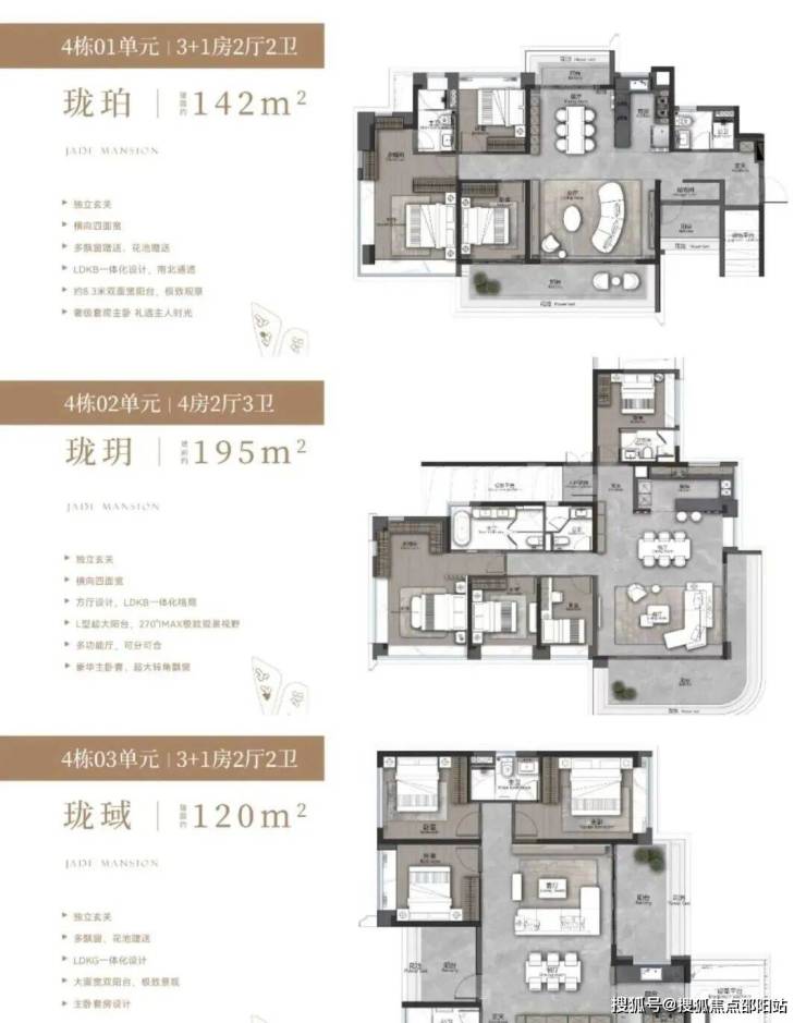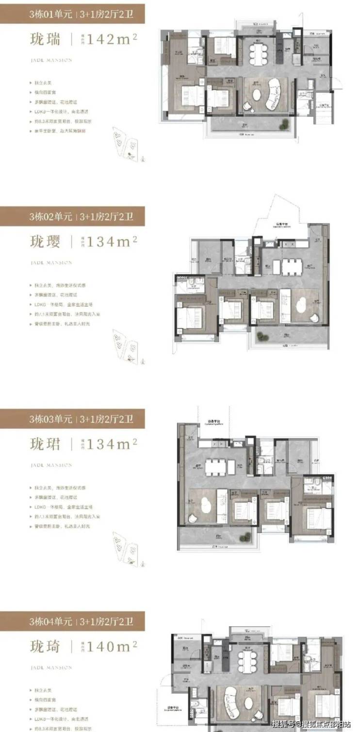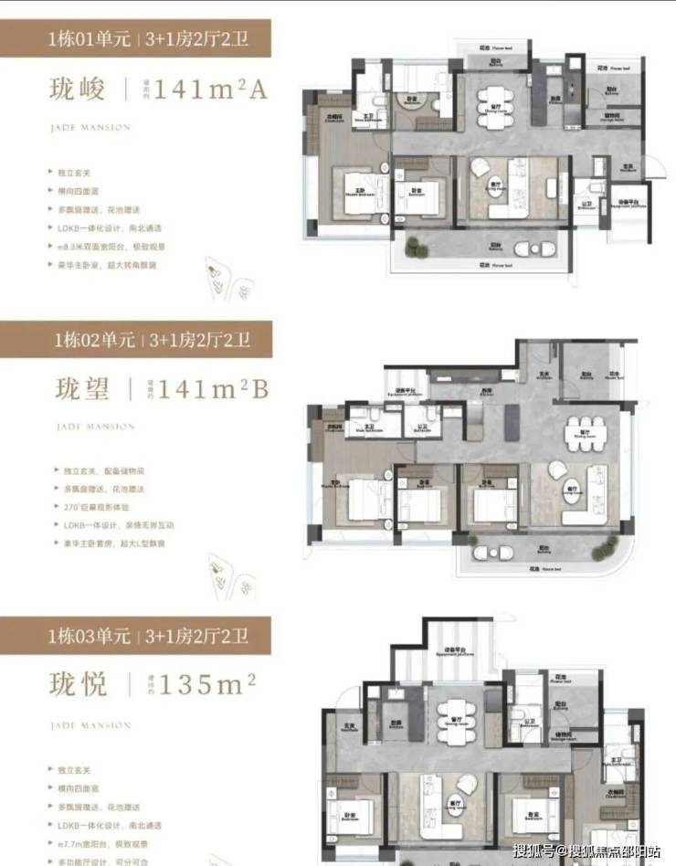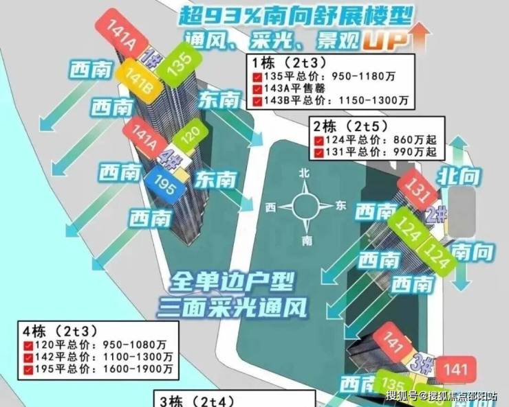 4、户型设计合理:户型设计顺应高维居所需要的生活场景迭代,主推约 135-143 平 3+1 房,具有独立入户玄关、大面宽、南向观景阳台等特点,且使用率约 100%,全屋采用了多处花池、飘窗等设计,将使用率拉满,同时多拓展空间。