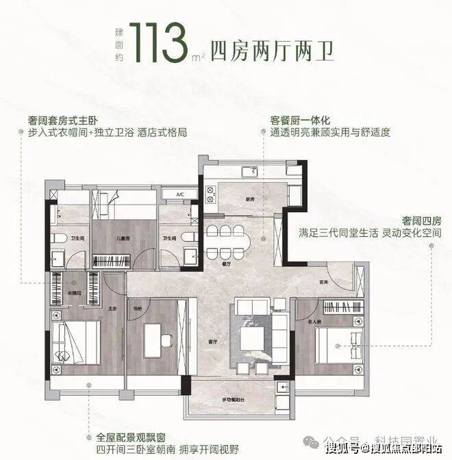 万科未来之光主打刚需改善定位,主力户型涵盖73-125㎡,含73㎡三房一卫、80㎡三房两卫、98㎡四房两卫、125㎡四房两卫,共规划1699套商品房住宅,梯户比合理,户户通透。户型核心亮点为超80%高得房率,创新S墙与LDK餐客厨连厅设计,内嵌式冰箱,实用与美观兼具,主卧套房设计,适配刚需上车、刚改及多孩家庭居住需求。