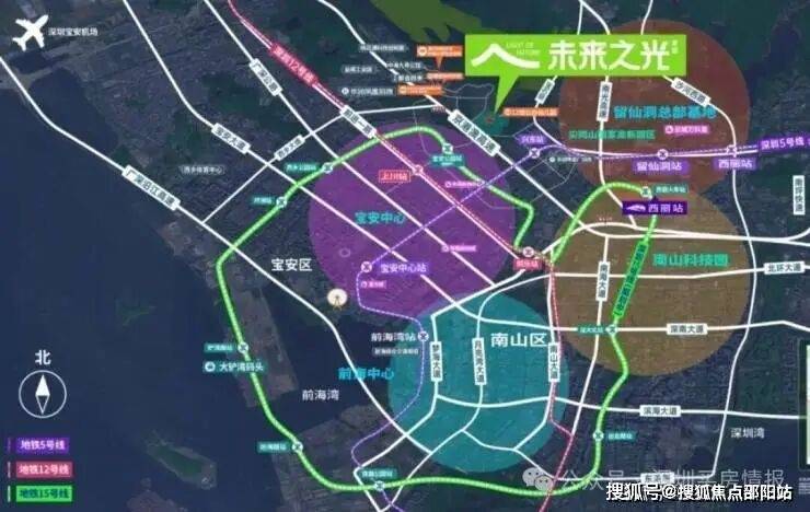 万科未来之光落址深圳市宝安区尖岗山片区,地处南山、宝安双核心辐射范围,直线距离前海不到6.5公里,承接两大核心板块发展红利,临近南山科技园、留仙洞总部基地、宝安中心等核心产业区。周边多条主干道环绕,依托京港澳高速、南光高速,自驾半小时可畅达福田CBD、前海后海等重点区域,设有“拾光车站”公交首末站,接驳地铁5号线兴东站,临近规划中地铁15号线,通勤高效便捷。