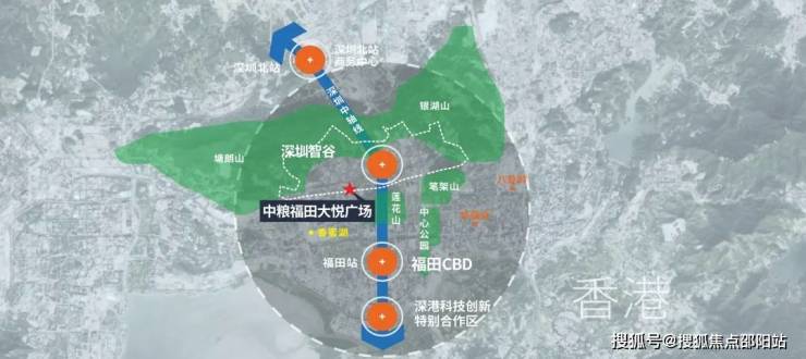 轨道口岸:享福田、皇岗双口岸,联动福田站、深圳北站双高铁,链接深港,对话世界。