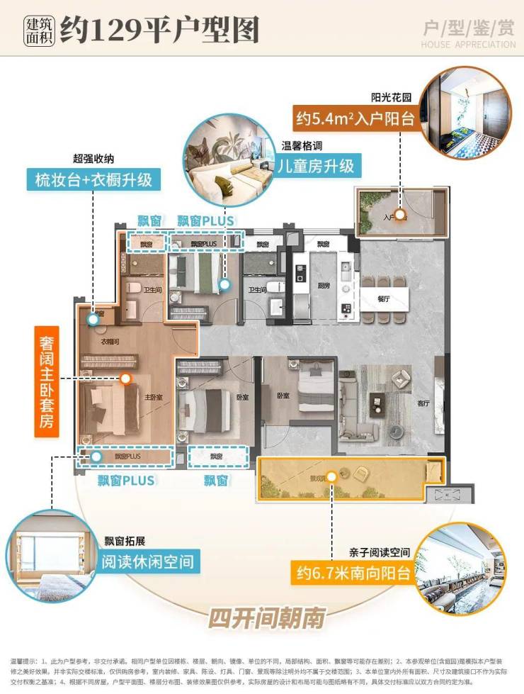 开间朝南的格局,入户花园与南向大阳台形成南北对流,清风阳光扑面而来,予以业主更多的满足感。