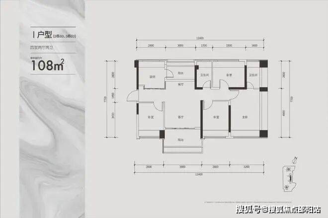 建面约108㎡通透四房户型