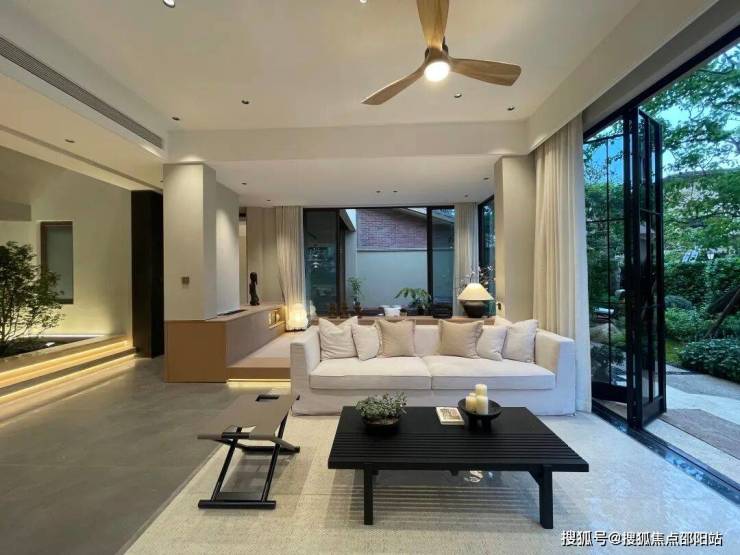 该户型首层的巨幕L型落地窗,最大限度延景入室。
