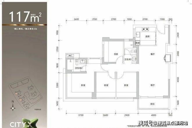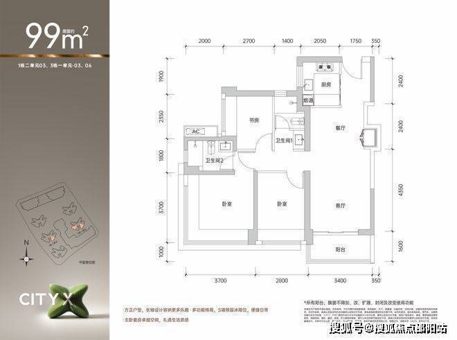 建筑面积约99㎡的3房2卫02/03/05/06户型:全南向爆款空间