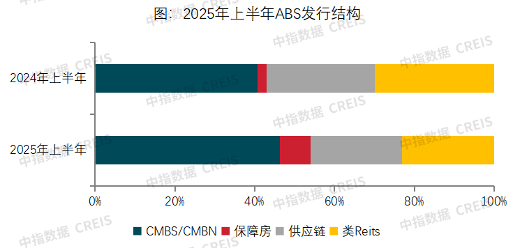 从发行结构来看,CMBS/CMBN为主要发行类型,占比为46.3%,类REITs、供应链ABS占比均为23.0%,CMBS/CMBN比例快速提升,发行占比较上年同期提升了5.6个百分点,供应链ABS占比略有下滑。供应链ABS占比不足四分之一,而CMBS/CMBN、类REITs占比近七成表明以优质底层资产为基础的ABS融资受到投资者青睐,也利于促进存量资产盘活。需要注意的是,商业地产市场持续承压的今天,空置率下降、租金下行仍将困扰存量资产运营,其过度下行或将促使部分ABS成为另一种债务负担。