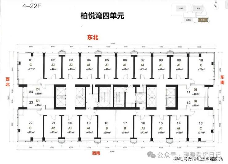 77㎡4房1卫一层4套端头位置东北,西北,东南西南,双面采光景观4面景观