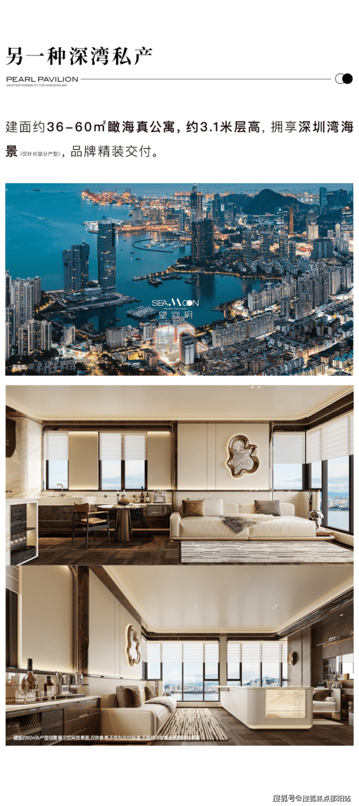 招商望海玥位于深圳市南山区蛇口新街与渔村路交汇处、距离地铁2/8号线东角头站267米;推出的是389套公寓产品、36--60平一至二房.