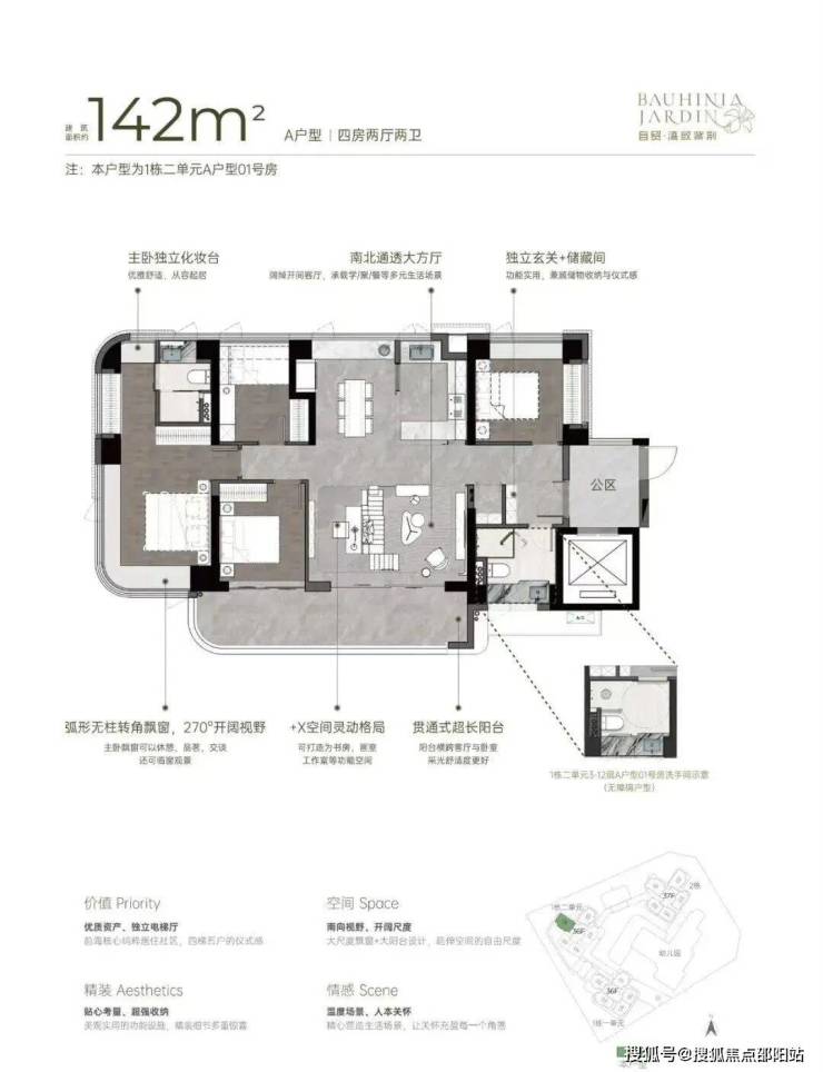 小区有485套纯住宅,车位595个,容积率5.14,共有三栋住宅,每栋做了36-37F高的4梯5户设计,每户都有专梯入户空间。