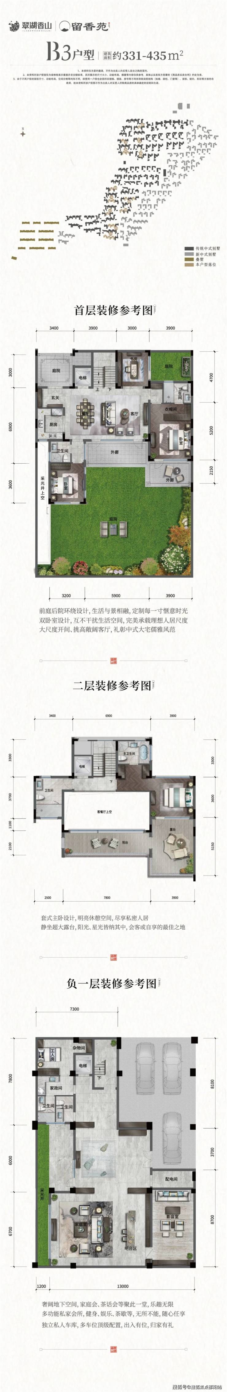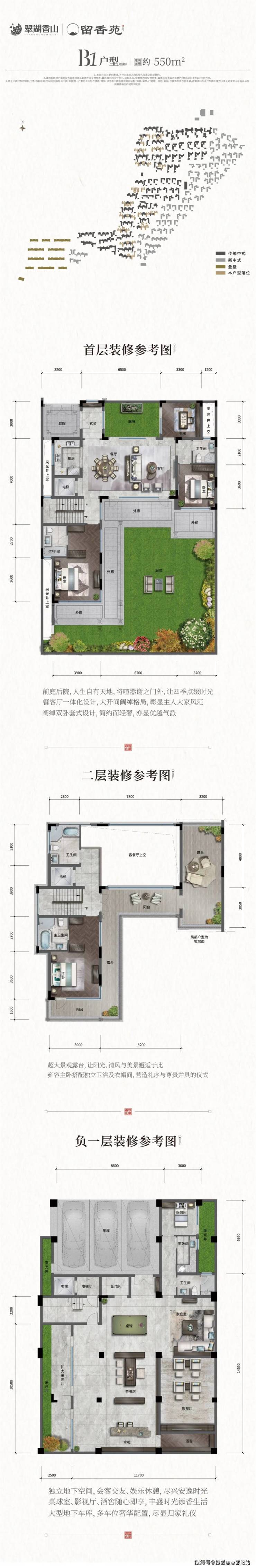 性价比极高,北入口,入户庭院设计,彰显豪门气派,入户客厅6米6挑空,主花园合计137平,方正实用,合院少有的三步富贵入门,地下室方正柱子少