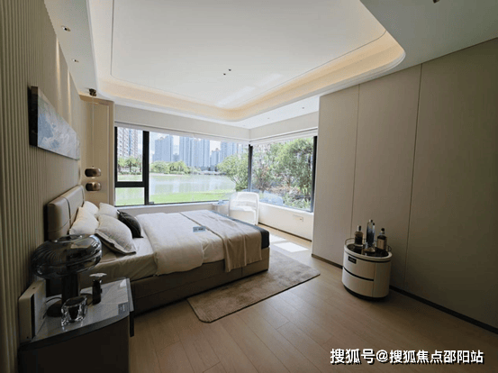 主卧采用套房式设计,配备270°转角飘窗,躺在床上也能享受“环幕美景”。