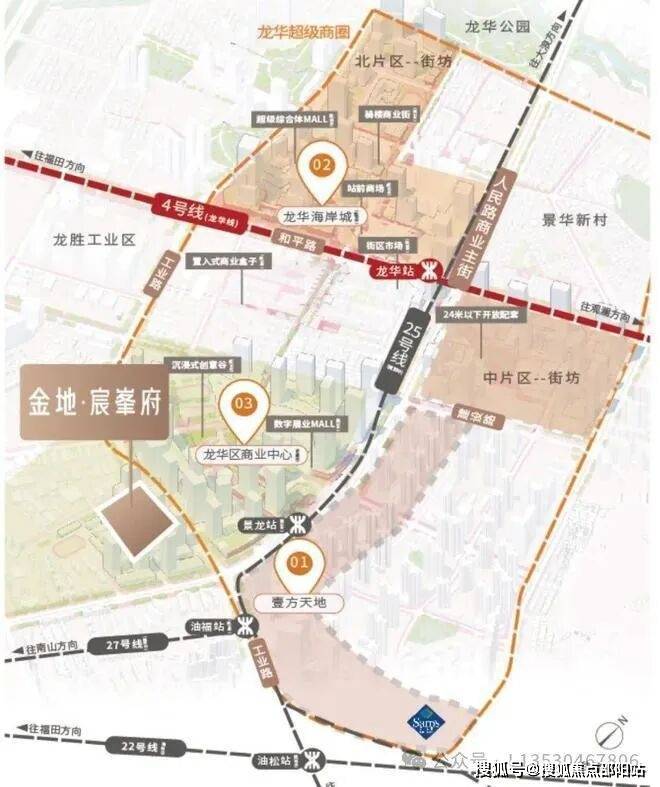 交通方面:位于龙华多条地铁线交汇处,地铁 4 号线龙华站及 6 号线上芬站举步即达,规划中地铁22、25、27号线等站点(规划中景龙站/油福站约400米)就近而设,加上规划中的侨城东路北延线和沙河东路北延线贯通龙华、南山、福田,直抵深圳湾,未来立体交通路网接驳,无界一城繁华生活。