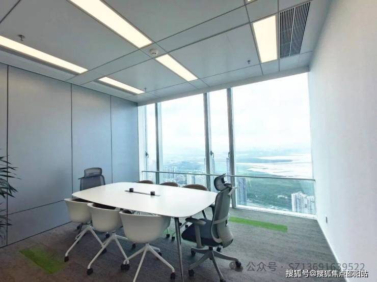 交付标准:130mm高架地板、天花吊顶、窗帘、茶水间、VIP洗手间等