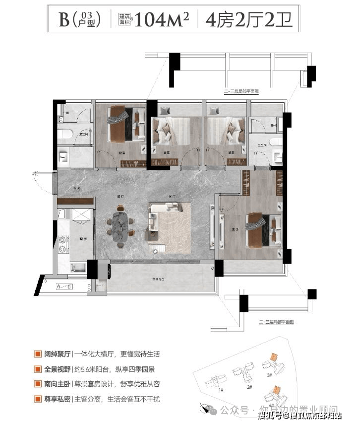 户型产品:建筑面积约91-173㎡三至四房