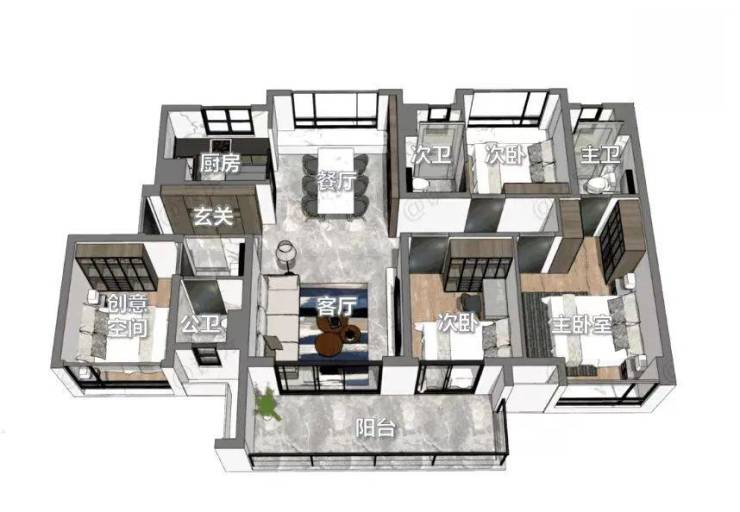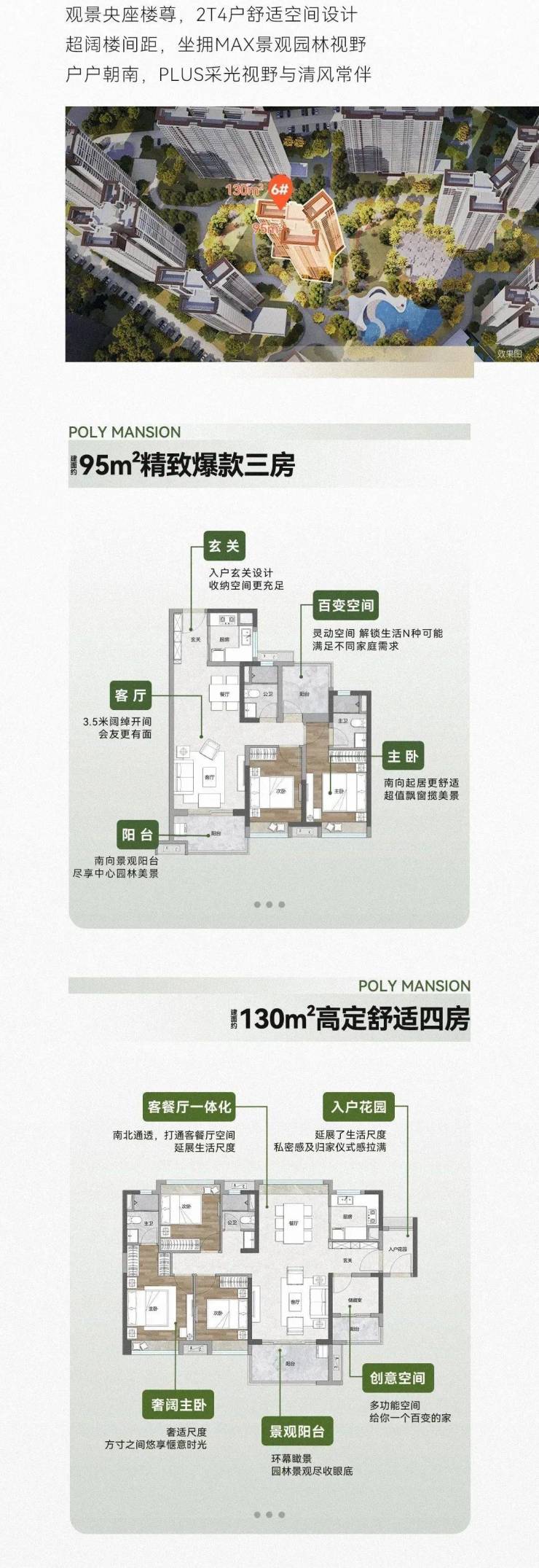 主力户型有建面约95㎡三房,建面约125-130㎡4房,以及138㎡4房双主套