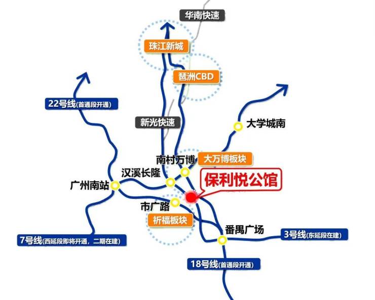 项目开车出门即达新光快速,10分钟可达万博,25分钟可达琶洲,30分钟可达珠江新城
